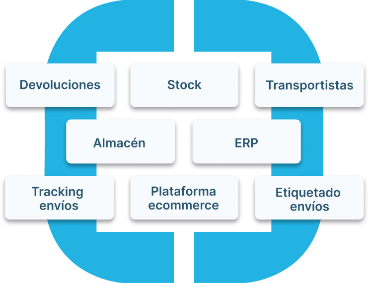 Imagina tener totalmente integrados y sincronizados múltiples transportistas, tus tiendas, el stock, el almacén, el ERP, automatizar la generación de etiquetas, el tracking… Hablamos de ese nivel de eficiencia.